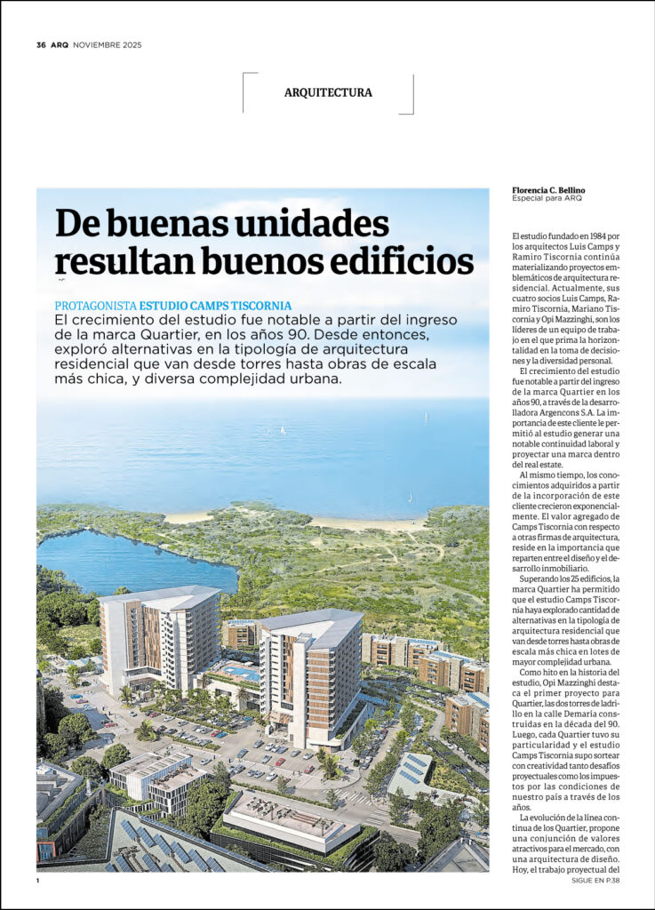El crecimiento del estudio Camps Tiscornia fue notable a partir del ingreso de la marca Quartier, en los años 90. Desde entonces, exploró alternativas en la tipología de arquitectura residencial que van desde torres hasta obras de escala más chica, y diversa complejidad urbana.